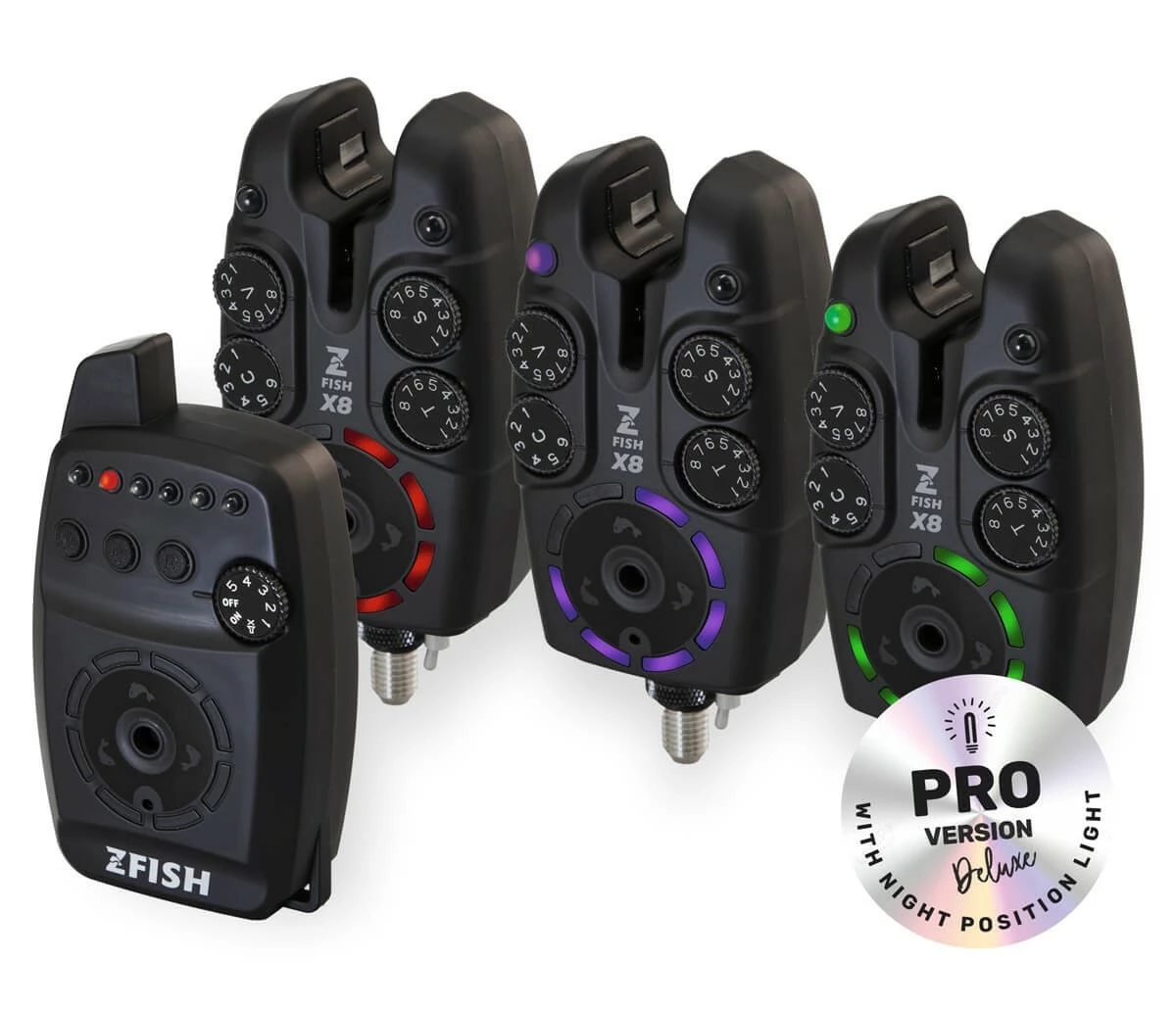 Los indicadores visuales se presentan en dos LED multicolores de alta visibilidad (verde, azul, rojo y naranja), con brillo ajustable y posibilidad de seleccionar el color mediante una sencilla combinación de botones. Además, cuenta con una toma de corriente de 2,5 mm para conectar indicadores de mordida iluminados como el Fox Illuminated Swinger®.