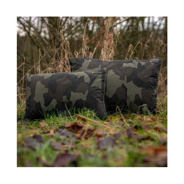 Almohada cojin de la marca Avid carp talla XL, Con un cómodo forro polar de tacto suave en un lado y Camo Rip Stop resistente al agua en el otro, las almohadas Revolve te permiten elegir qué lado es mejor para ti.