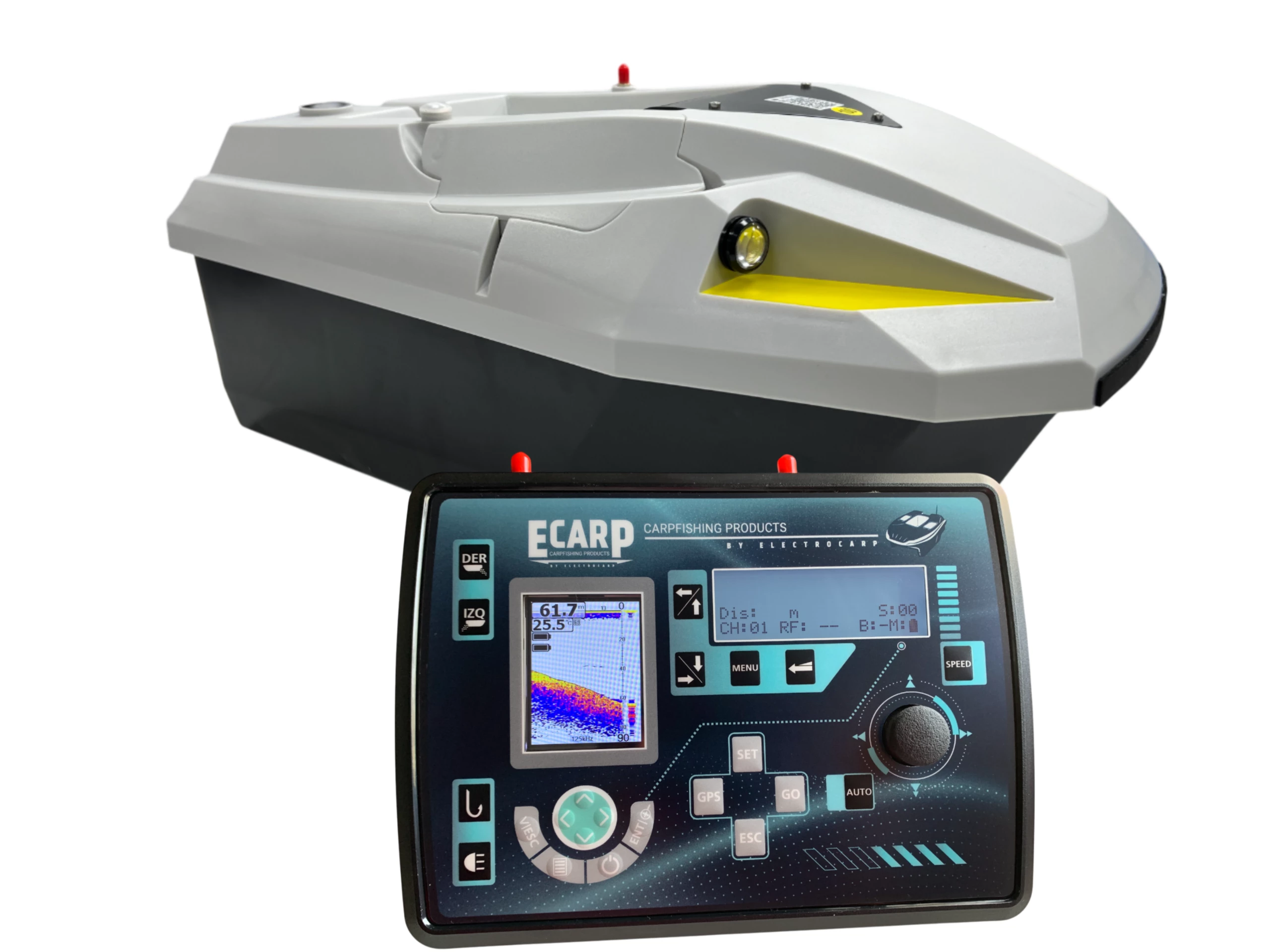 Barco cebador Electrocarp Ecarp Carpio C3 Hybrid con sonda a color, GPS de alta precisión y piloto automático. Máxima capacidad, autonomía y fiabilidad para carpfishing profesional.