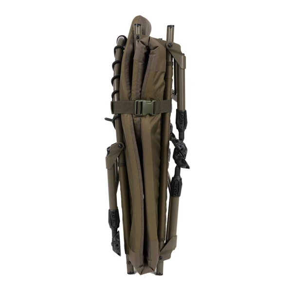 El colchón acolchado con forro polar de la bedchair ofrece una sensación térmica agradable, ideal para sesiones nocturnas o en climas fríos, mientras que la zona de la cabeza cuenta con un refuerzo extra acolchado para un mayor confort. El acabado en tejido Voyager Marl aporta un diseño moderno y resistente.