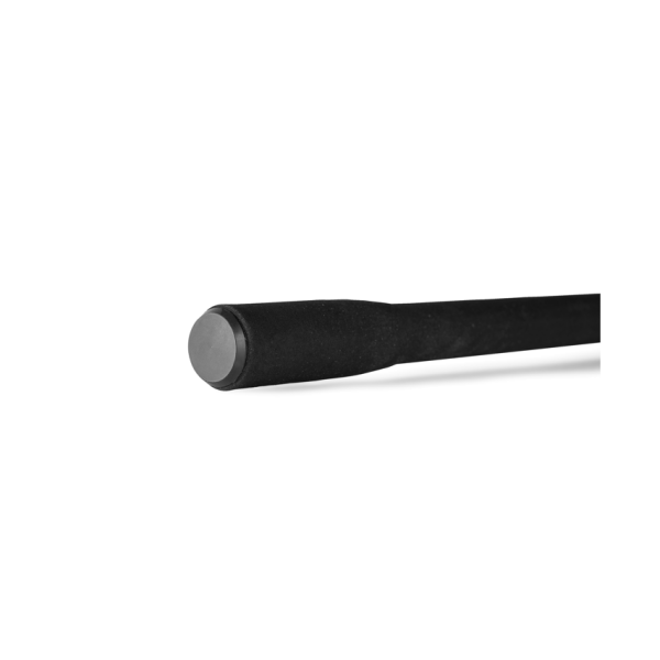 El portacarretes de 18 mm de alta calidad proporciona una sujeción firme y segura, mientras que el acabado negro mate y la pequeña sección de tejido 3k sobre el portacarretes aportan un aspecto elegante y sobrio. El mango completamente envuelto en plástico, con un ligero diseño acampanado, ofrece comodidad y control en cada captura, adaptándose perfectamente a las manos del pescador.