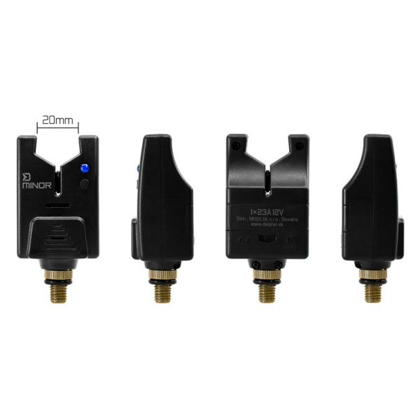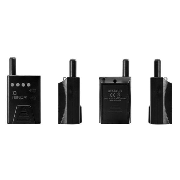 Set de alarmas de carpfishing de la marca Delphin, modelo Minor con 3 alarmas más receptor, un maletín compacto, resistente al agua y con excelente alcance. Incluye tres alarmas (azul, roja y verde) y un receptor con vibración, todos con memoria de ajustes y larga duración de batería. Ideal para pescadores que buscan fiabilidad a un precio accesible.