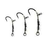 Paquete de monteajes de «RONNIE RIG» de la marca Extra Carp. Se trata de un conjunto diseñado principalmente para la pesca con un cebo flotante cerca del fondo. Con Ronnie Rig, tu pesca siempre será un nivel más exitosa. El paquete contiene tres conjuntos listos para usar. La esencia del ensamblaje es un anzuelo muy afilado, que con la ayuda de un eslabón giratorio o un mandril de perforación (el cebo se puede mover libremente) aumentará la probabilidad de clavar el anzuelo en la boca del pez varias veces. Otro elemento importante del ensamblaje es el tope que mantiene el mandril del cebo en su lugar.