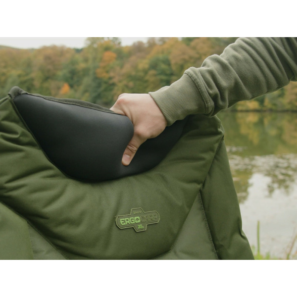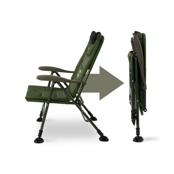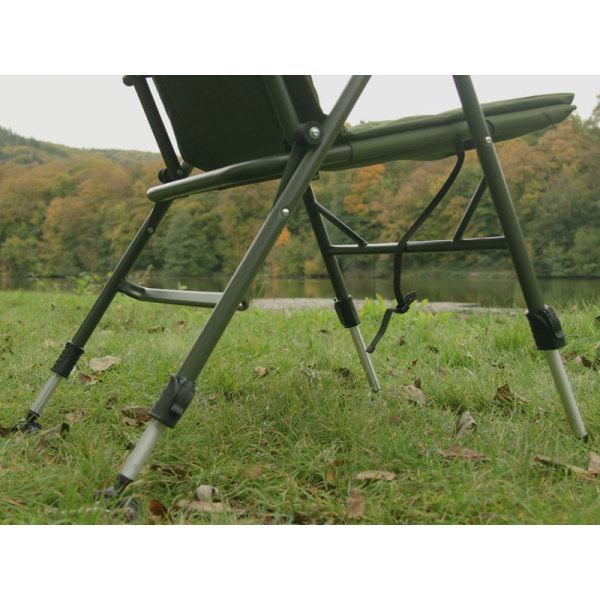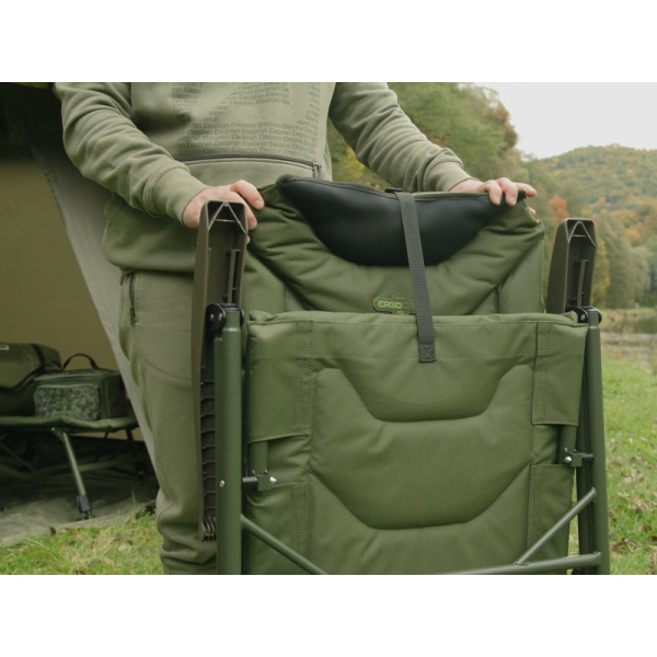 Silla Delphin ErgoCARP XL: máxima comodidad ergonómica, respaldo ajustable, patas regulables y gran resistencia (150 kg). Ideal para largas jornadas de pesca a carpfishing
